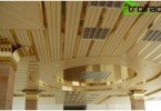 Plafond à lattes pour la salle de bain - l’incarnation de toutes les idées