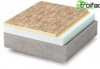 L’option la plus optimale est le substrat Tuplex. Il se compose de trois couches: les couches supérieure et inférieure sont en polyéthylène et l’âme est en polystyrène expansé. Ce matériau aligne parfaitement la base de la chape en béton, retient bien la chaleur et présente également une élasticité et une résistance aux dommages mécaniques..