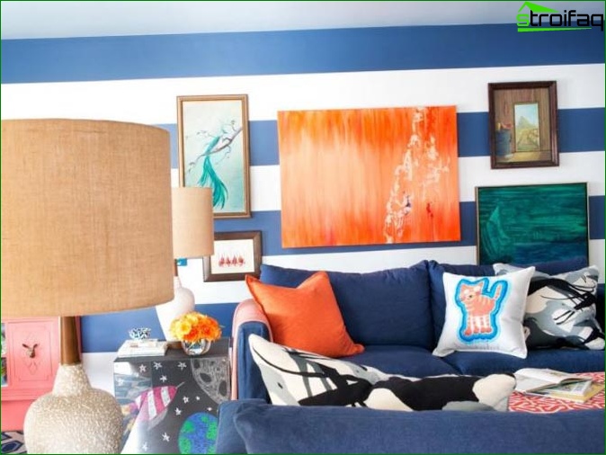Cependant, les peintures murales ne doivent pas devenir un élément agressif de l’intérieur qui vous ennuiera, vous et vos invités. En principe, c’est leur principal inconvénient. Il est préférable de les placer dans un endroit où ils ne distraireont pas de la conversation ou de regarder la télévision.
