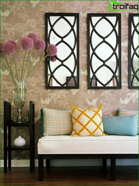 Lorsque vous créez un salon dans un style oriental, assurez-vous de bien réfléchir à tout dans les moindres détails. Décidez quelle culture vous préférez - Turquie, Japon, Chine, Maroc ou autre. Insistez - sous la forme moderne, vous voulez tout faire ou à l’ancienne. Ensuite, il vous sera plus facile de sélectionner des papiers peints - ils deviendront simples ou décorés avec des motifs traditionnels.