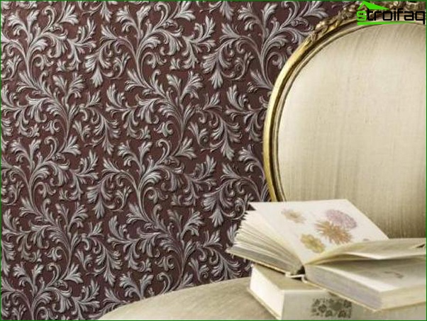 - vinyle. En raison de ses qualités, il est le plus souvent utilisé dans le couloir et dans la cuisine. Ils sont rarement utilisés dans la conception de la salle en raison du petit assortiment et de la faible perméabilité à l’air. Une variété - papiers peints en sérigraphie, dans la couche supérieure de vinyle dont du fil de soie est ajouté.