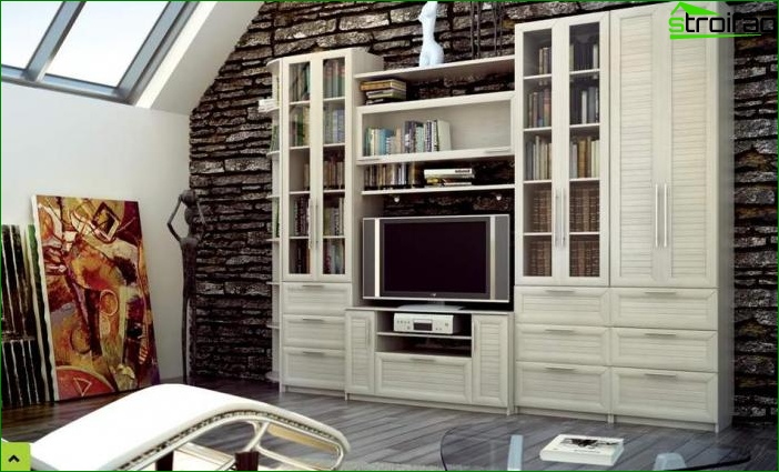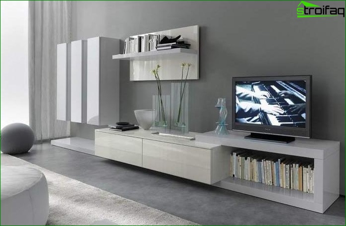Dans ce cas, l’option la plus optimale est une couleur gris neutre du papier peint, car l’accent dans la pièce est censé être sur le mobilier lui-même. Il est souhaitable que l’image soit petite et discrète ou complètement absente.