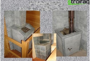 La dix-neuvième rangée est associée à l’installation de la porte nécessaire à la sortie de vapeur. Les vingtième et vingt et unième rangées sont fixées par de fines bandes d’acier doux. Sur la vingt et unième rangée, la porte pour la vapeur est fermée, un récipient est placé sous l’eau chaude, qui est entourée de fragments de briques. Au vingt-troisième rang, l’installation du tuyau commence, sa hauteur dépendra de la hauteur du bain.