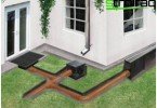 Vous pouvez également augmenter la capacité, par exemple, mettre le réservoir-réservoir de la moitié du baril - de 100 litres, il est juste difficile de le retirer. Mais ce problème est résolu, vous pouvez utiliser la poubelle standard sur roues. Un gril est disposé à sa base, ainsi qu’un tuyau pour drainer les déchets liquides dans la tranchée de drainage.